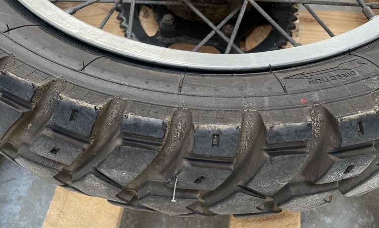 Außerdem habe ich einmal probeweise den Hinterreifen de- und neu montiert, bevor ich verschleißbedingt einen neuen Reifen montieren ließ – so konnte ich am alten Reifen schön üben und es wäre nicht schlimm gewesen, wenn etwas kaputtgegangen wäre. Das Ganze hat sich als anspruchsvoll, aber machbar herausgestellt und ich durfte es kurz später schon wiederholen, als ich nach einer Tagestour einen Platten hatte – ein kleiner Nagel hat sich durchs Profil gebohrt und war genau lang genug, um den Reifen zu beschädigen.